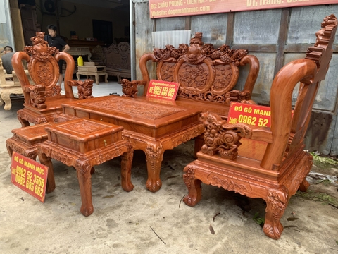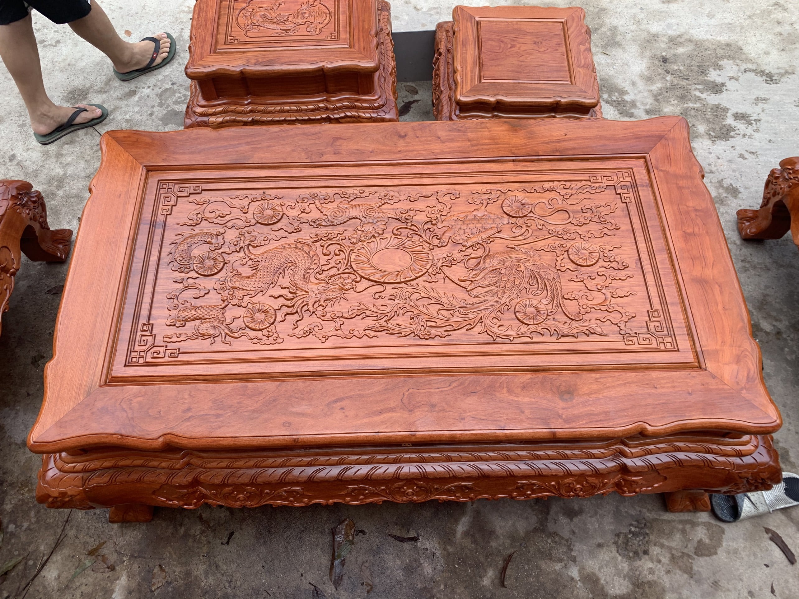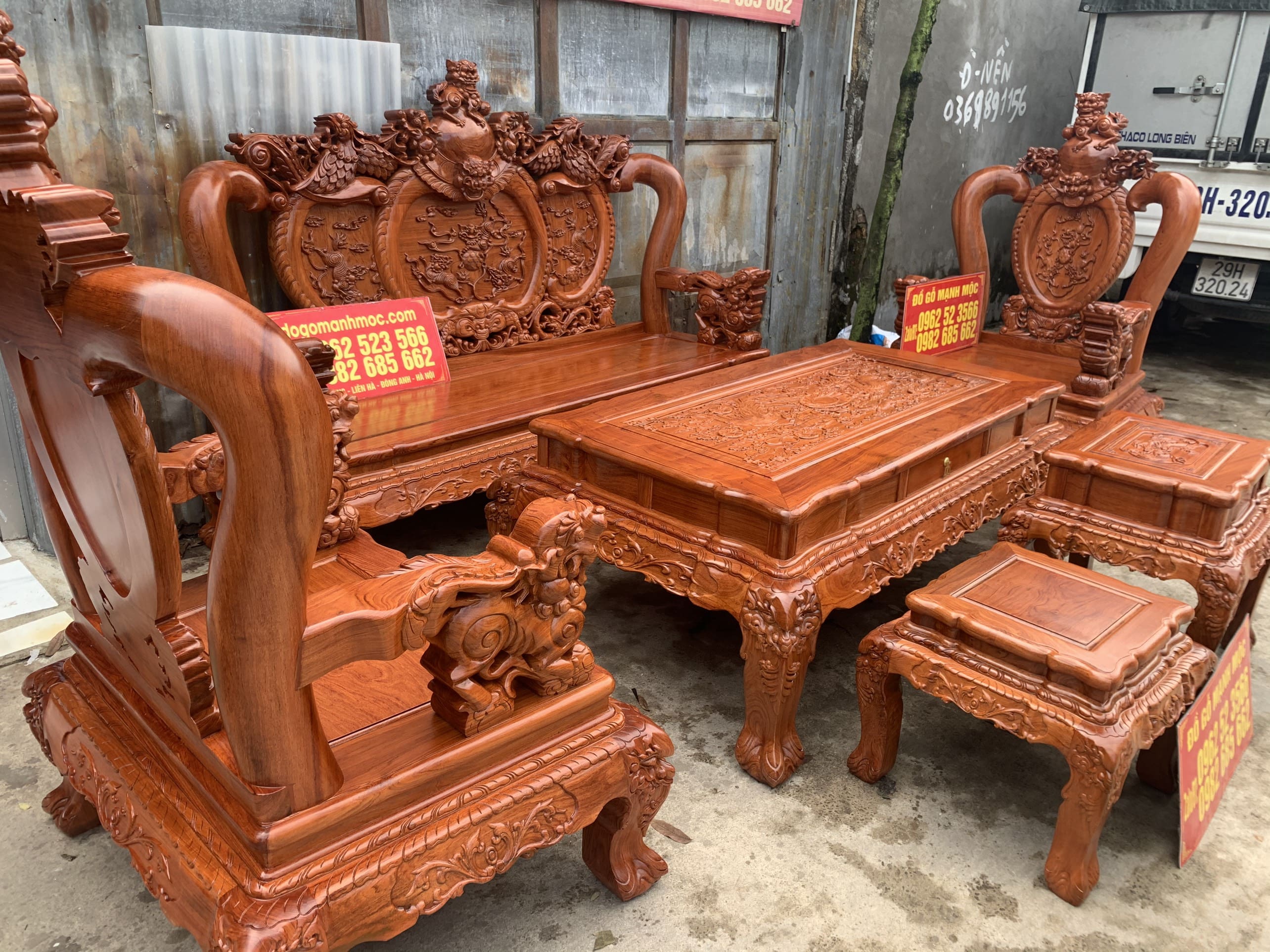 Bộ Bàn Ghế Phòng Khách Nghê Đỉnh Gỗ Hương Đá Tay 12 6 món : 45tr