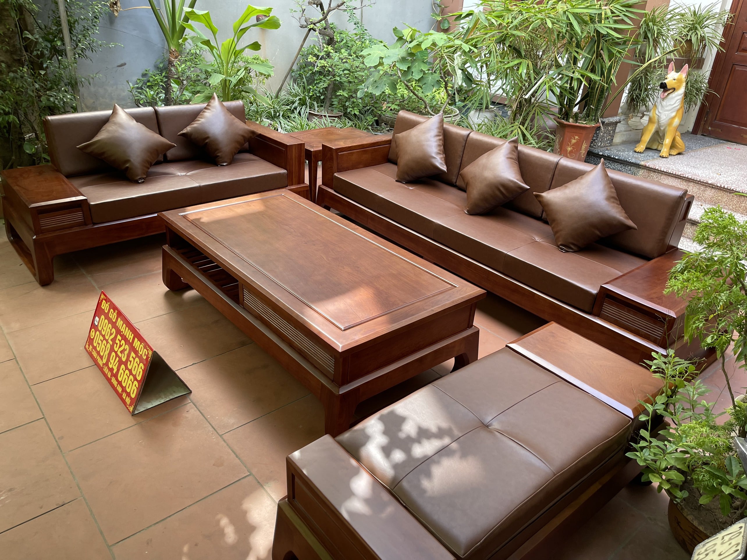 Sofa Chân Choãi Gỗ Hương Đá Sơn Pu Màu Óc Chó Hàng Đặt A Hiệp - HN