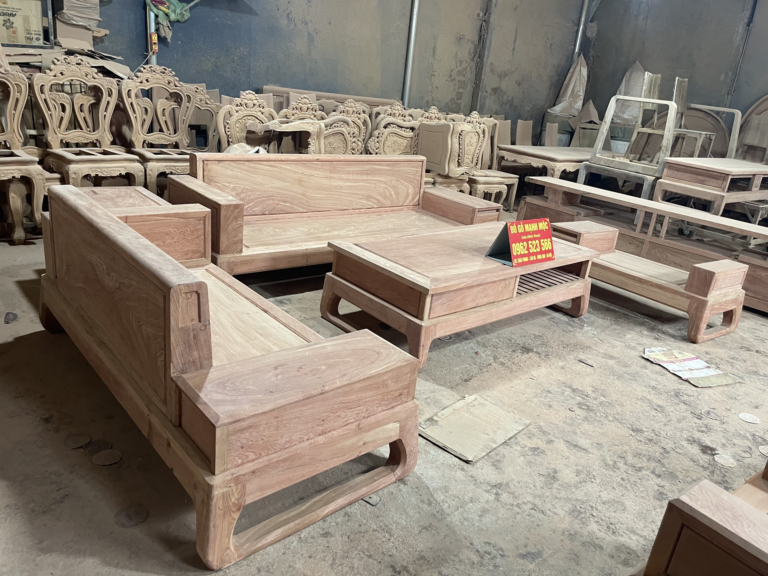 Bộ sofa được chế tác 100̀ bằng gỗ Hương Đá chọn lựa gỗ kỹ càng không pha tạp không bám rác được làm với quy cách hàng VIP hàng DÀY DẶN nhất phân khúc trên thị trường.