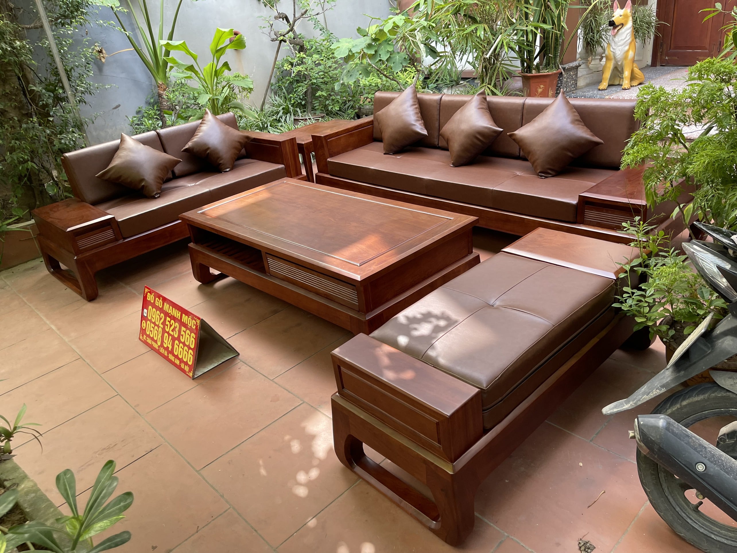 Bộ Sofa Chân Choãi Gỗ Hương Đá Hàng Đặt của A HIệp được trang bị bộ đệm da CLEO Hàn Quốc. Đệm dày 12cm
