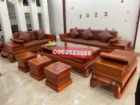 Bộ Sofa Chân Thuyền Gỗ Hương Đá Được Sơn PU Hương Nguyên Bản Hiện Đại Khi Được Bàn Giao về Khoái Châu Hưng Yên Trang Bị Bộ Da CLEO Hàn Quốc Nhập Khẩu.Mã 14