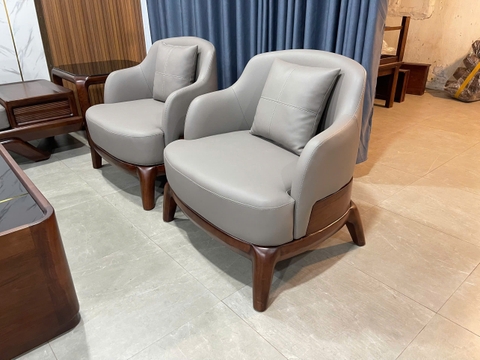 Sofa Gỗ Óc Chó Chân Thuyền Góc L Hiện Đại V2 Đệm Da CAROLA Ý