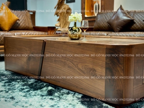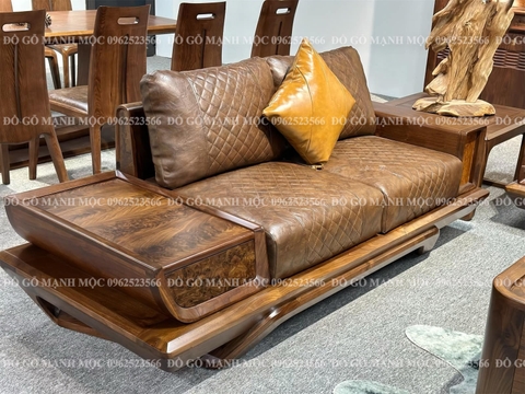 Sofa Gỗ Óc Chó Góc L Hiện Đại Chân Vát Chéo Ngăn Kéo Cong