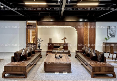 Sofa Gỗ Óc Chó Kê Đối Hiện Đại Chân Choãi
